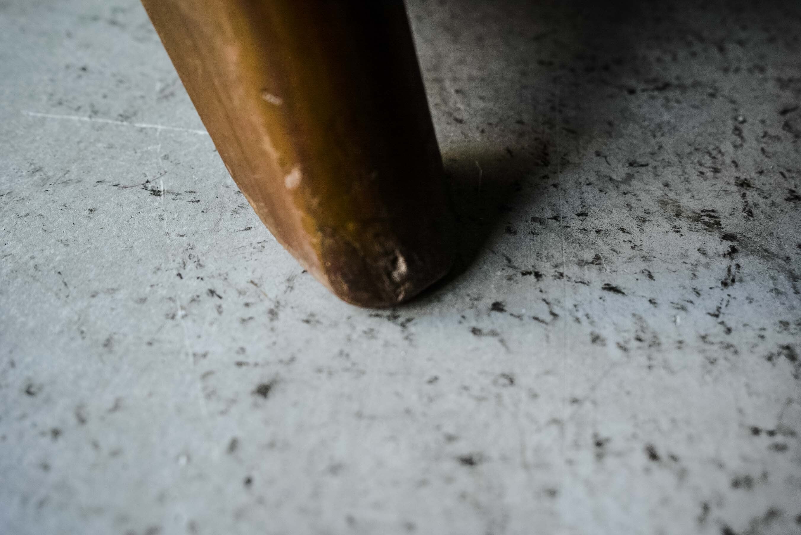 素材はチーク、脚部に小さな欠けとアームテーブルと足に