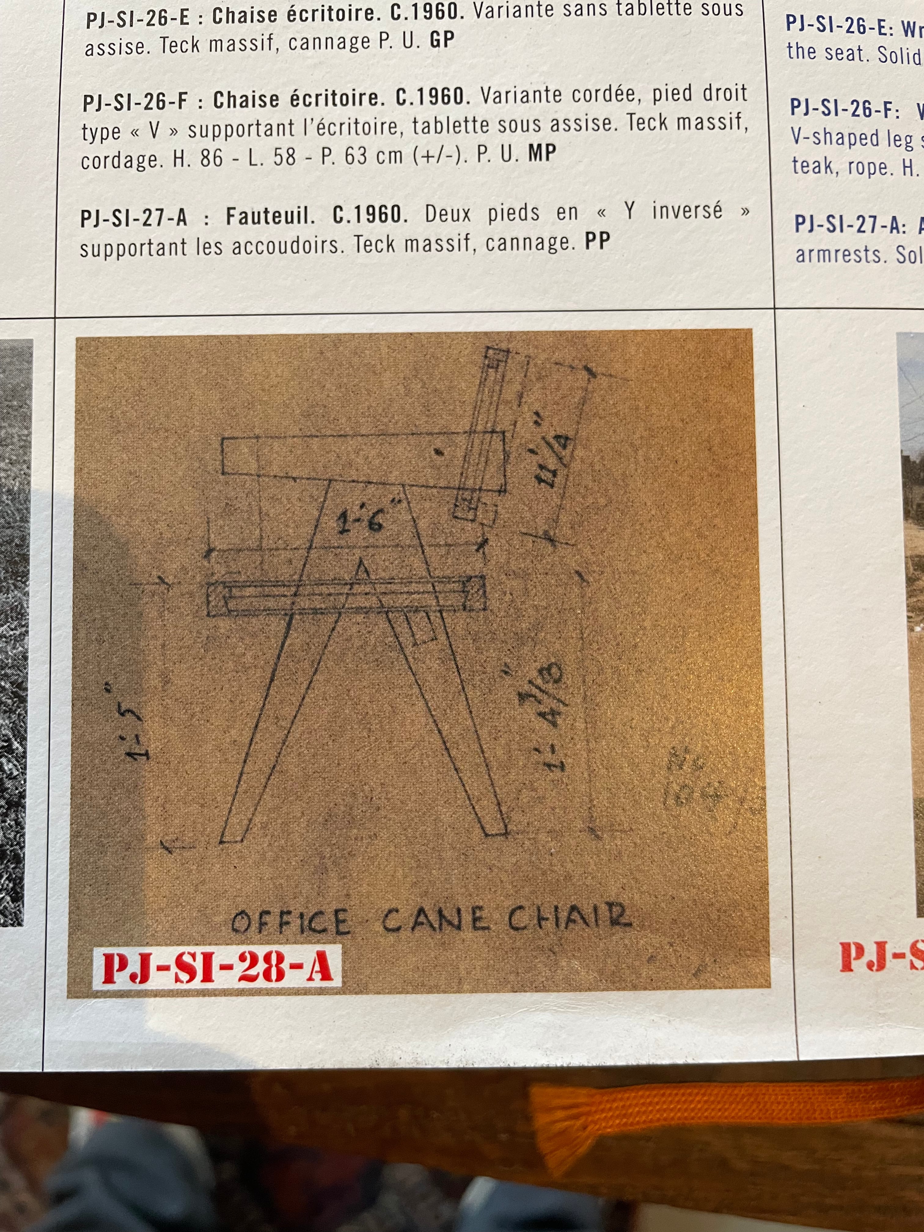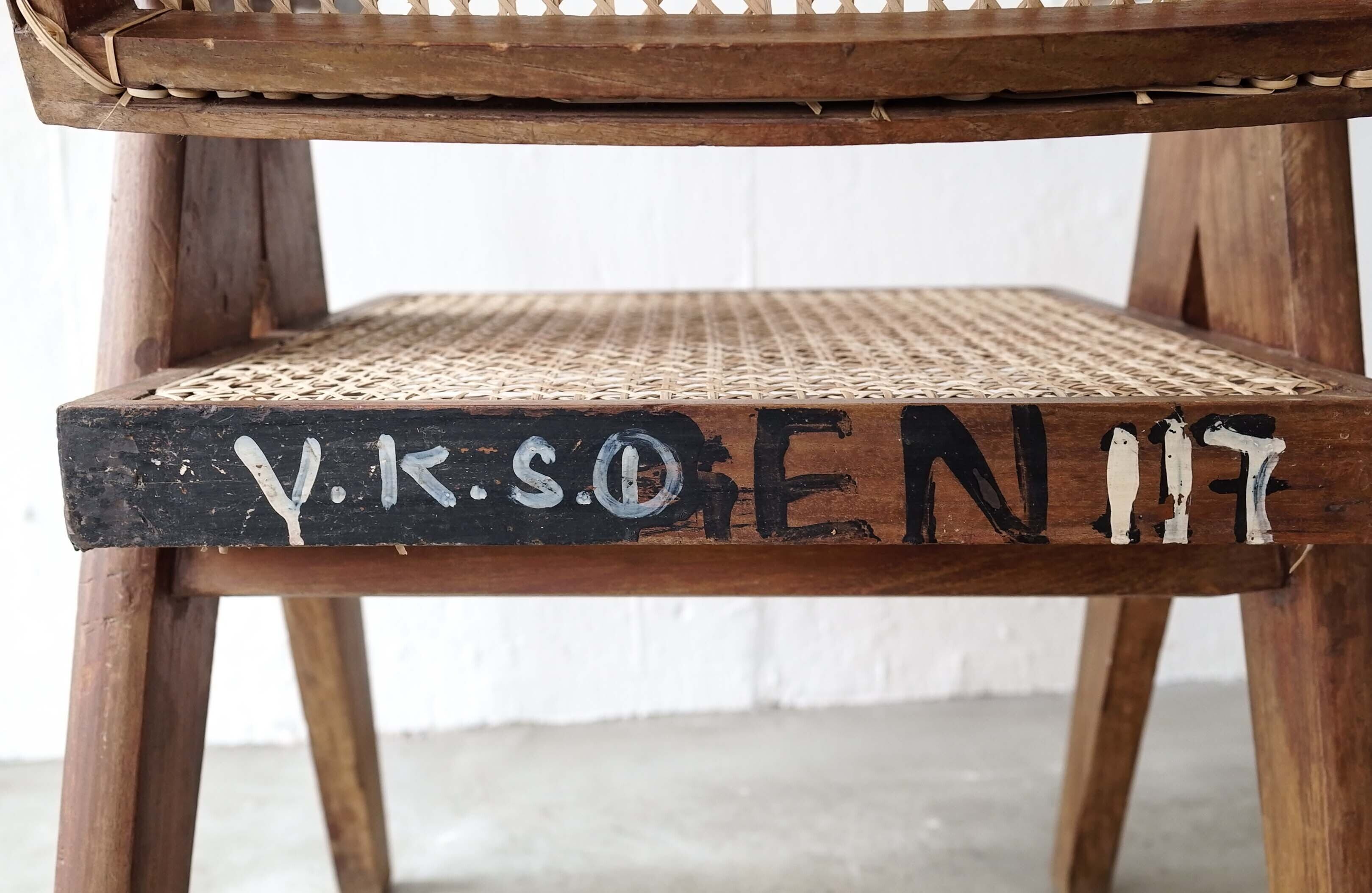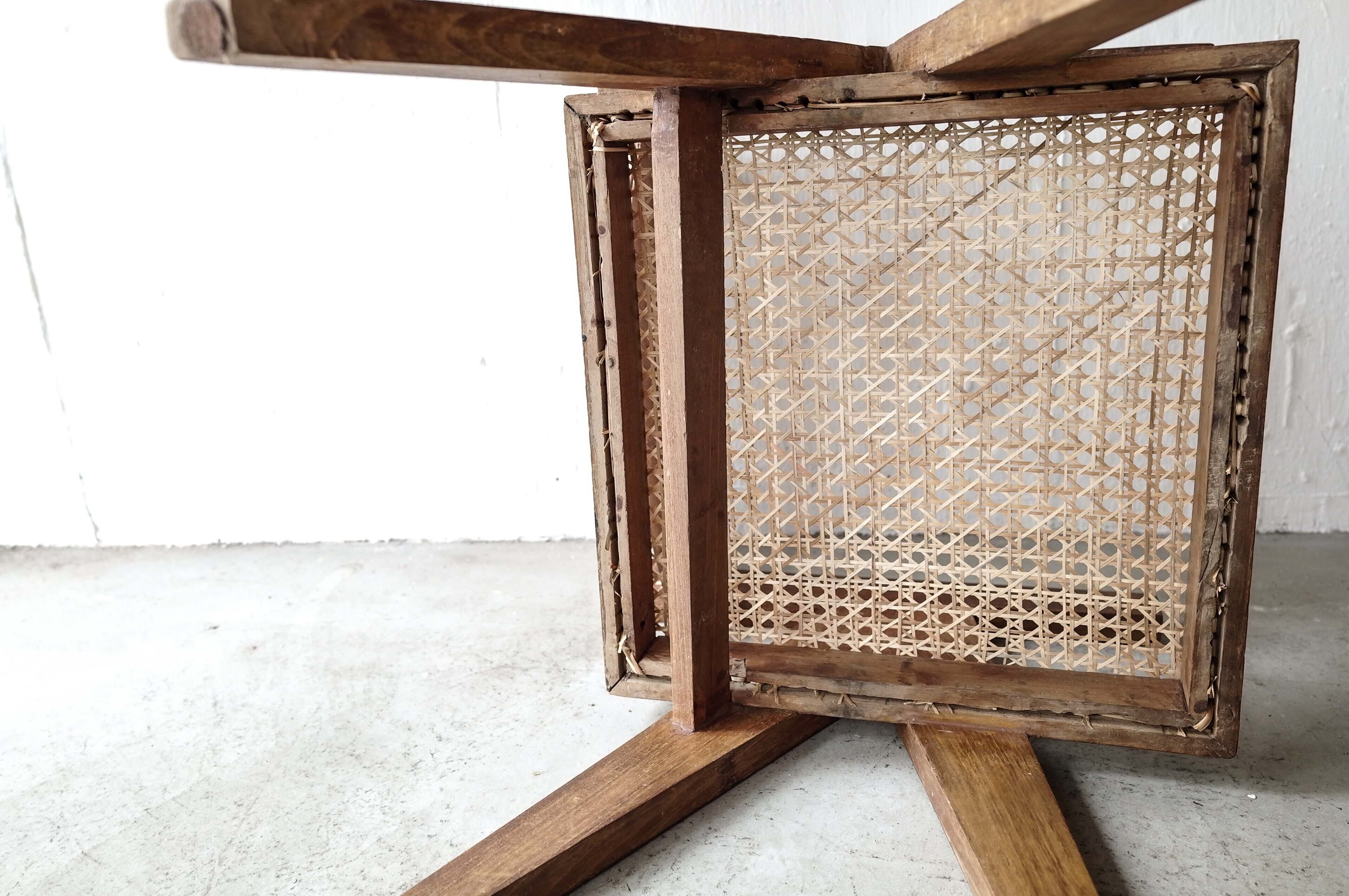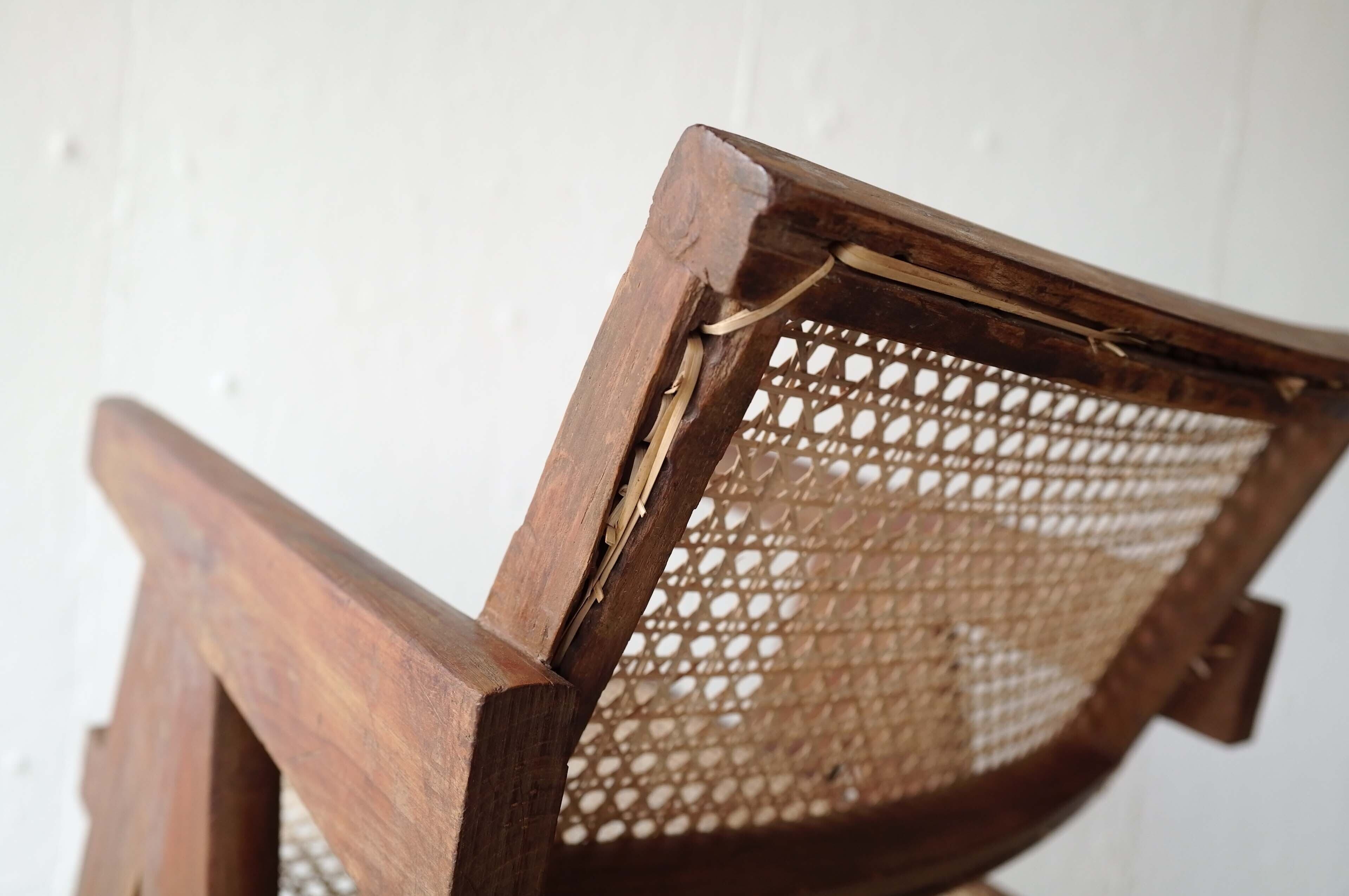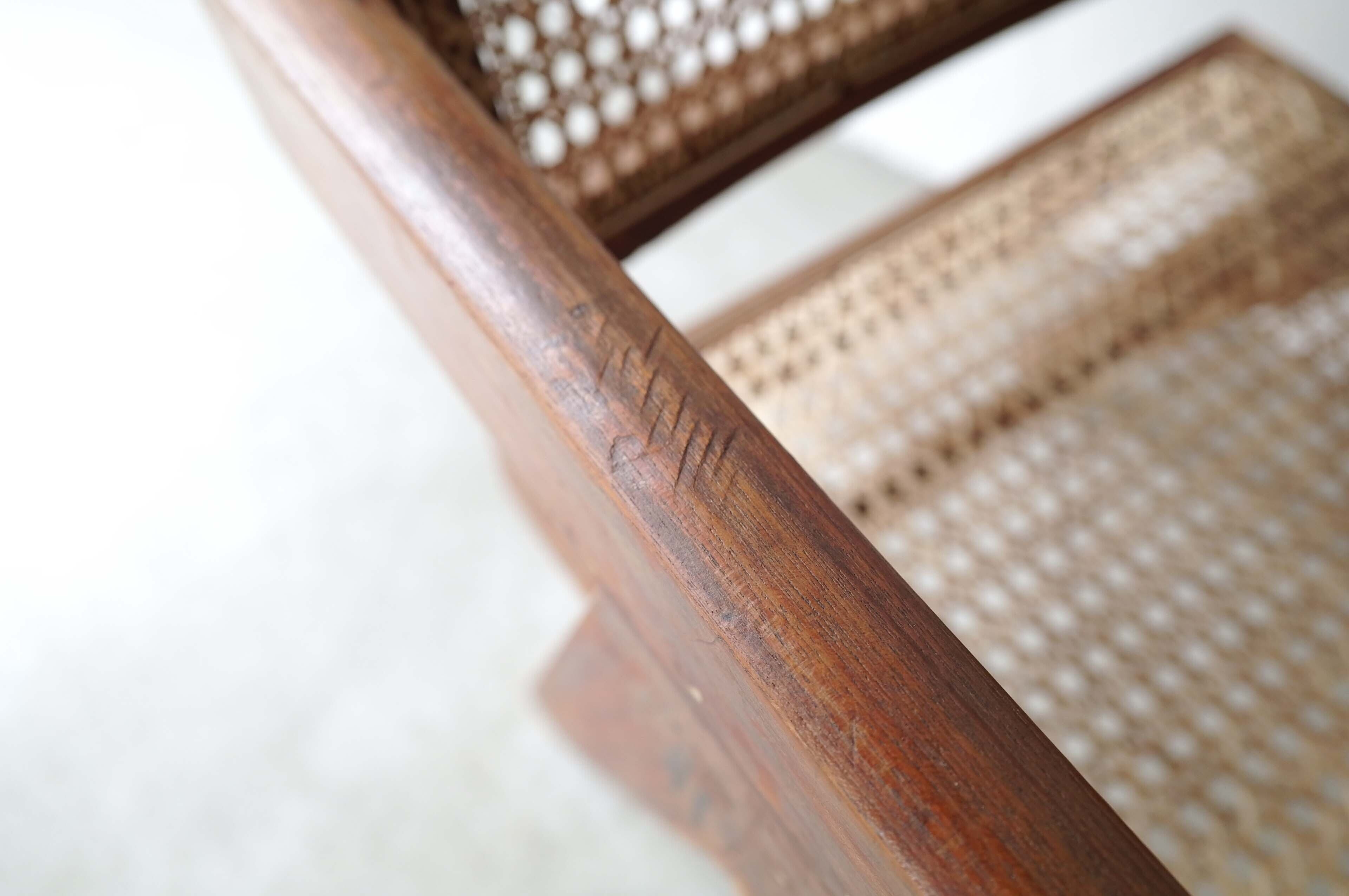 足の支柱が1本だったり、籐を通す穴の作りなど古いディティールが見られます。